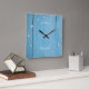 Ceci est une horloge murale peinte en bois peint bleu très brut