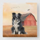 Horloge Carrée Border Collie Dog and Red Barn Ranch