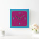 Horloge Carrée Bordure bleu-vert atmosphérique avec centre cerise