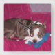 Horloge Carrée Boston Terrier repose sur un canapé rouge -peintur