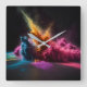 Horloge Carrée Bras en poudre arc-en-ciel sur noir