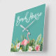 Script de brosse moderne Aquarelle Tropical Floral Beach House Mur Horloge avec flamant rose.