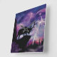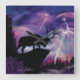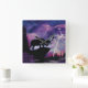 Éclaircissez votre maison avec cette horloge murale taureau unique "One of a Kind"! Il présente une silhouette noire d'un élan taureau debout sur une haute montagne surplombant une magnifique tempête violette sur une nuit éclairée par la lune! ! Art graphique original par l'artiste Kerry Miller.