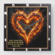 This incredibly moving and symbolic design captures the theme of Fire Within—the passionate, everlasting presence of the Holy Spirit. The artwork, featured on a square wall clock, showcases a powerful heart shape formed by intense, rough, dark burning embers and flames on a deep black background, conveying a rugged, enduring faith. The core spiritual message from Romans 5:5 is clearly displayed: "God's love has been poured into our hearts through the Holy Spirit." The striking visual of the burning heart symbolizes a purified, transformative love. The highest quality print and artwork used on the surface is so exceptional it creates a stunningly realistic tactile illusion; you could easily mistake the textures for genuine embossed metal or heavy, worn leather. This piece is a spectacular dedication to faith and the love of God. this impressive, high-quality piece is a perfect gift for any devoted person, honoring their spiritual journey.