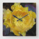 Horloge Carrée Cactus de prickly pourpre avec Fleur Jaune