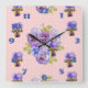 Horloge Carrée Cadran de style shabby chic fleurs de pensée rose