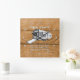 This square clock features a generic toy hauler RV with a rustic wood background. You can add your family's first and last names as well as the year your family was established. You can always know that this is your "happy camper" home.