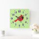 Horloge Carrée Cardinal Rouge Cardinal Cardinal aux Fleurs