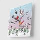 Horloge Carrée Cardinaux du Nord Rouge mignonne Amour Paysage hiv