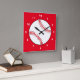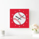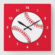 Cette pendule carré présente un baseball rouge et blanc entouré d'un arrière - plan rouge. Idéal pour les amateurs de sport !