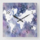 Horloge Carrée Carte du monde rose bleu Design 65