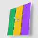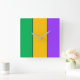 Mardi gras Stripes Pattern Green Yellow Purple Fat Tuesday Carnival Party Colorful Decor Square Wall Clock