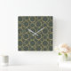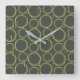 Horloge Carrée Cercles dorés & chic moderne vert olive rustique