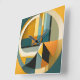Cercles et rectangles d'abstraction géométriques rétro. Faites une déclaration audacieuse dans votre espace avec cette peinture abstraite captivante inspirée des designs de Bauhaus. Ses cercles, ses courbes et ses rectangles aux couleurs vives de jaune, brun turquoise, noir et bleu ajouteront une touche d’élégance à votre décor.