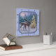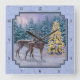 Horloge Carrée Cerf et arbre de Noël Bleu d'hiver