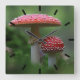 Champignons magiques Fairytale avec casquettes rouges et herbe verte.