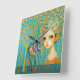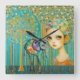 Un éléphant stylisé et coloré se tient à côté d'une fille aux grands yeux et d'un casquette fantaisiste à motifs. Des arbres pointillés et des rayures verticales vibrantes remplissent l'arrière - plan d'un sens de l'imaginaire et de l'émerveillement. Photoshop Art numérique CS5
