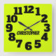Horloge Carrée Chartreuse Neon Jaune-Vert Grand Nombre