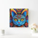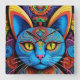 Horloge Carrée Chat Abstrait Avec Des Yeux Jaunes