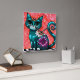 Chat de chaton Whimsical assis sur le tapis Floral Turquoise
