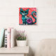 Horloge Carrée Chat de chaton Whimsical assis sur le tapis Floral