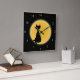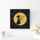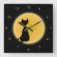Horloge Carrée Chat noir et lune jaune Halloween Art