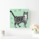Horloge Carrée Chat Tigre Chats Art Animal Décor Vert Menthe