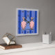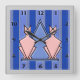 Horloge Carrée Chats Art déco roses sur fond rayé bleu