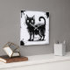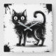 Cette horloge saisissante présente un chat noir grincheux de style doodle comme pièce maîtresse. Le chat est dessiné avec des lignes rugueuses et peu esthétiques et une texture affligée, lui donnant une sensation artistique et pointue. Des plaques d'encre noire entourent le chat, ajoutant une énergie dynamique et brute à la conception.