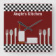 Horloge Carrée Checkerboard personnel Kitchen Utensils Clock