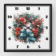 Horloge Carrée Chemise d'aquarelle de Noël avec Holly