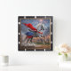 Cette horloge murale capture un cheval blanc majestueux élevant contre un ciel dramatique de crépuscule rempli de feux d'artifice vibrants et le drapeau américain. Cette scène héroïque mêle puissance équestre et fête patriotique. Le design audacieux et captivant évoque un sentiment de liberté, de force et de fierté nationale, ce qui en fait une pièce de décoration symbolique et frappante.