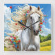 Horloge Carrée Cheval et fleurs