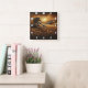 Horloge Carrée Cheval galopant à travers des champs d'or au couch