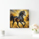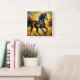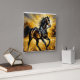 Horloge Carrée Cheval noir traversant l'eau au coucher du soleil