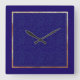 Horloge Carrée Chic Gold Cobalt Abstrait cadre floral
