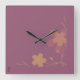 Horloge Carrée Chic Gold Purple Abstrait Floral