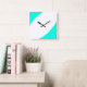 Horloge Carrée Chic Moderne Bright White Aqua Courbes Abstraites