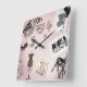 Chic and trendy pink, Paris noir et blanc 1920 vintage fashion clock. Eiffel tower, tailor's stupides, etc.