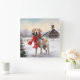 Au beau milieu d'un pays merveilleux d'hiver, un chien ludique profite d'un matin de Noël enneigé, laissant d'adorables empreintes de pattes dans la neige scintillante. Leur joie et leur curiosité ajoutent de la chaleur à l'enchanteresse des lieux de vacances, ce qui en fait une véritable magie.