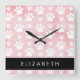 Horloge Carrée Chien Paws, White Paws, Aquarelles roses, Votre No
