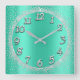 Horloge Carrée Chiffres en argent Confetti Parties scintillant Gr