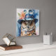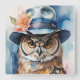 Horloge Carrée Chouette lunaire en Casquette Fedora