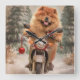 Horloge Carrée Chow Chow Chien chevauchant la moto Noël