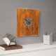 A nautical wheel design on a teak wood veneer grain style background decor. Le poison nautical est moderne.