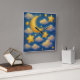 Une peinture pastel fantaisiste d'un ciel nocturne. Une image réconfortante d'une lune croissante entourée d'étoiles souriantes et de nuages doux et lumineux. Les teintes apaisantes du bleu de minuit, du jaune doré et du lavande créent une atmosphère douillette et de conte de fées. Chaque étoile brille avec une touche de chaleur et de personnalité, transformant le ciel nocturne en une réunion paisible d'amis endormis. Cette pièce apporte un sentiment de réconfort, d'innocence et d'émerveillement. Cette pièce est idéale pour les nurseries, les chambres d'enfants ou pour quiconque aime l'art céleste fantaisiste. Accrochez-la au-dessus d'un lit à barreaux ou d'une table à langer pour créer un point de mire doux et engageant. Cette œuvre d'art fait également un cadeau de baby