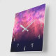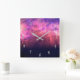 Horloge Carrée Ciel étoilé rose violet cosmique galaxie feu lueur