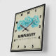 Horloge Carrée Citation de typographie simpliste avec Rose Turquo