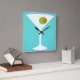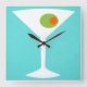 This Classic Movie Martini Wall Clock fets a turquoise background and the white silhouette of a martini glass. Inside the glass is a glorious green olive with an orange pimento. This is a fun wall clock for everyone who wishes they were a character in a classic movie. Shaken not stirred !