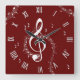 Horloge Carrée Climactic G Clef Music Chiffres rouges romains